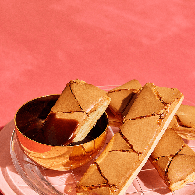 겹겹이 쌓인 바삭한 파이에 얇게 덮인 머랭과 격자무늬 살구 시럽의 달콤한 맛의 조화로 단연 눈에 띄는 누네띠네.